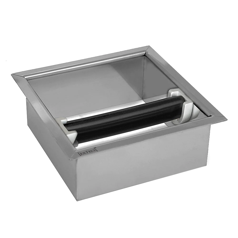 De Joe Frex Counter Top Inbouw RVS is een handige en duurzame inbouw knockbox, ideaal voor het afkloppen van gebruikte koffie in een espressobar of keuken. Gemaakt van hoogwaardig roestvrij staal, past deze knockbox in het werkblad, wat zorgt voor een strakke, georganiseerde uitstraling en eenvoudig gebruik. De stevige rubberen stang zorgt voor geluidsdemping bij het uitkloppen van koffiepucks.